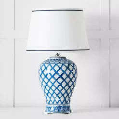 Our gorgeous ginger jar table lamp will look equally at home in the living room or as statement bedside lamps. The navy piping on the shade picks up the colour of the lamp base and is a lovely touch.