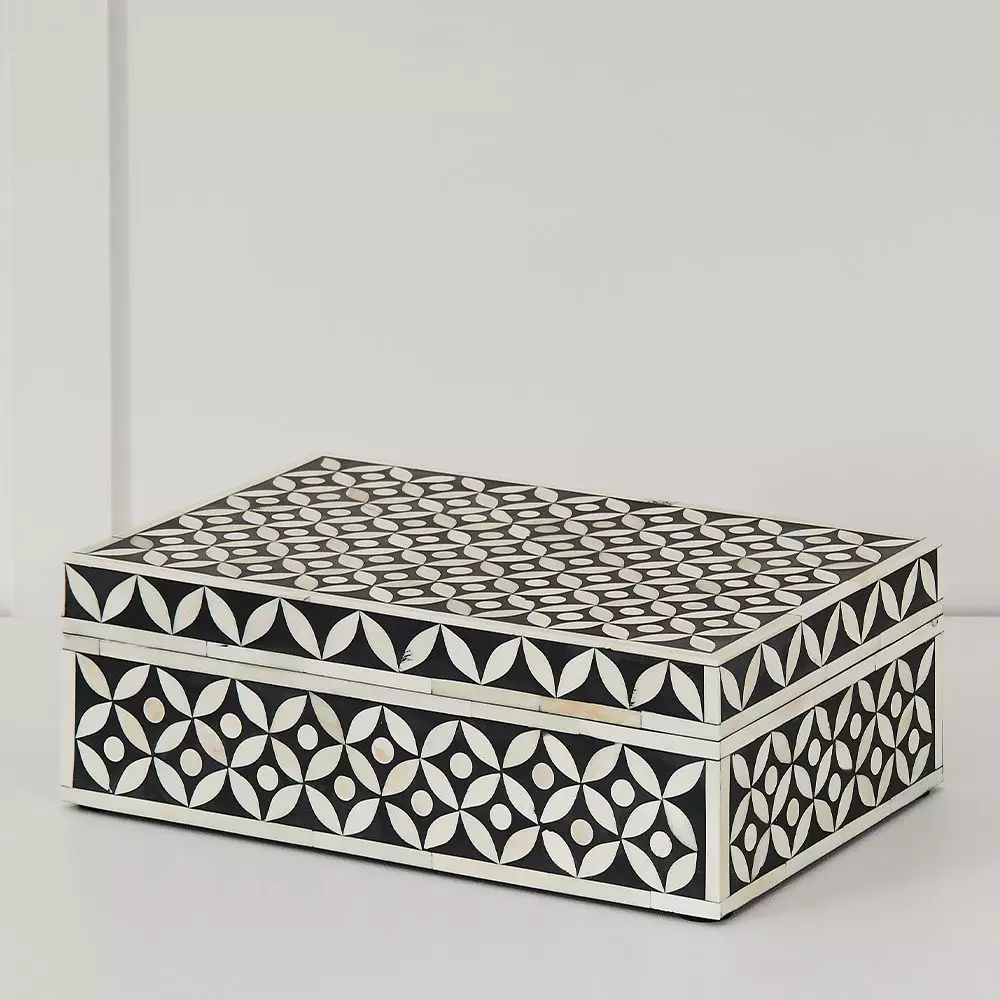 Our beautiful Mia ethically sourced bone inlay box is the perfect addition to any household. This Sophisticated piece is both functional and decorative.